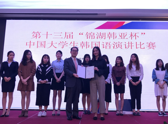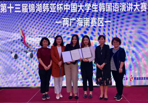 11月17日,由中国人民对外友好协会、中国韩国友好协会和韩国中国友好协会联合主办第十三届锦湖韩亚杯中国大学生韩国语演讲大赛两广海南赛区决赛在广州建国酒店举行。我院朝鲜语系选派15级吴霞和钟玥两名学子参加了此次比赛,并分别获得了大赛第一名和第二名的好成绩。