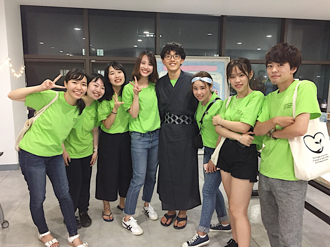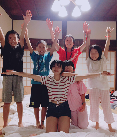 李家慧(中间条纹衣服)参加每日新闻社高野山夏令营