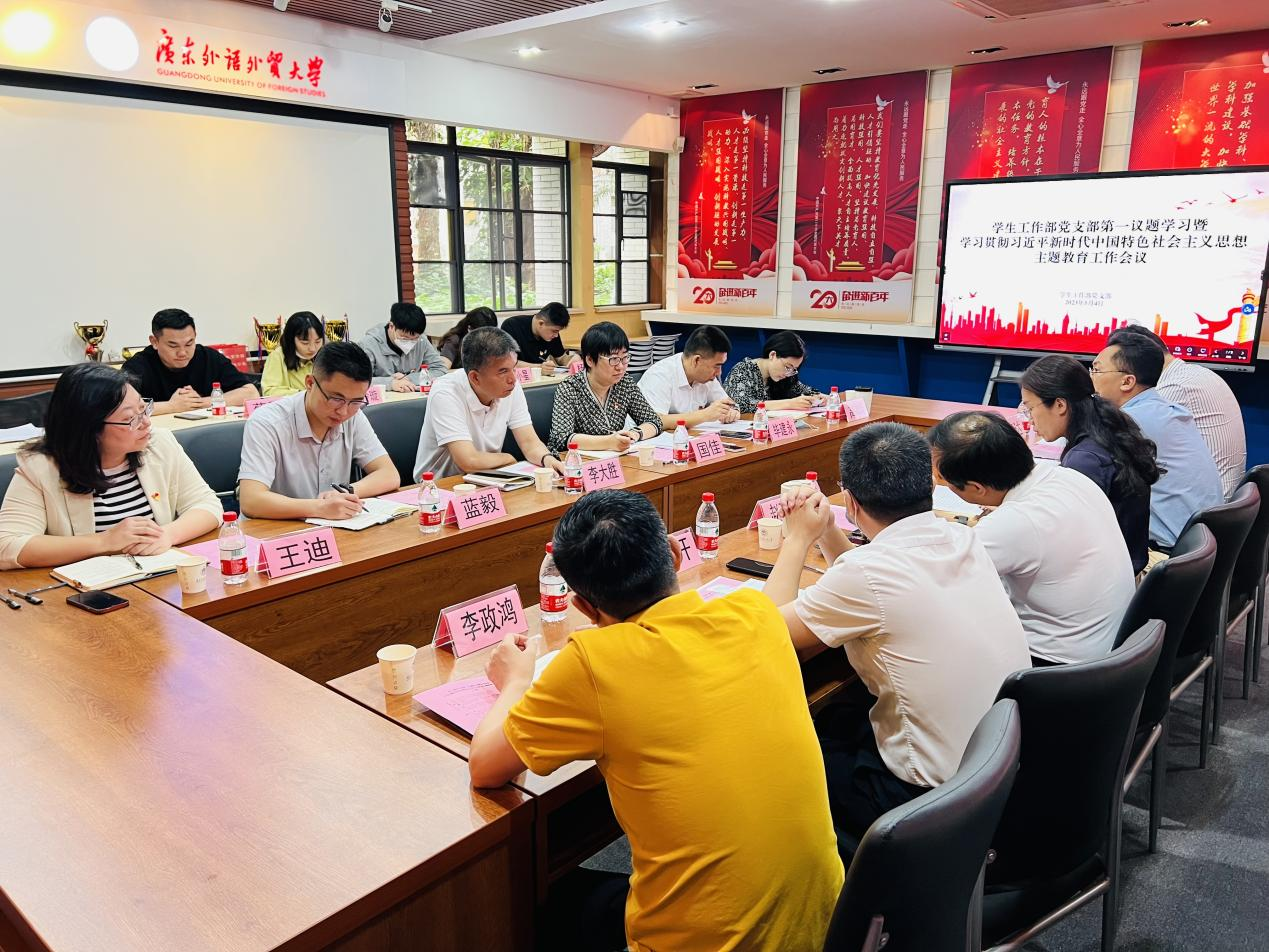 5月4日,学工部党支部在白云山校区六教B106会议室召开第一议题学习暨学习贯彻习近平新时代中国特色社会主义思想主题教育工作会。省委第二十巡回指导组组长李大胜、组员蓝毅出席会议。学工部党支部委员、学工部班子成员、学工部各科室负责人及学院学生工作负责人、辅导员代表参加会议。第一议题学习主题为深入学习贯彻习近平总书记伟德bv国际体育教育的重要论述,推动学生工作高质量发展。