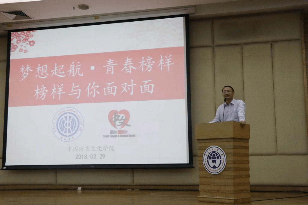 本网讯 3月29日晚,中国语言文化学院于图书馆报告厅举行中文学院国家奖学金榜样、国家励志奖学金榜样分享会。党委副书记李江,校学生处思政科长叶开,辅导员杨韬、朱倩渝出席本次分享会。分享会由李江致开场辞,他强调榜样力量在同学们人生中的重要性,他说道:“希望同学们学习国奖得主如何学习,如何热心社会实践,学会奉献、责任与担当。”同时他还提到应该大力宣传榜样,形成优良学风。