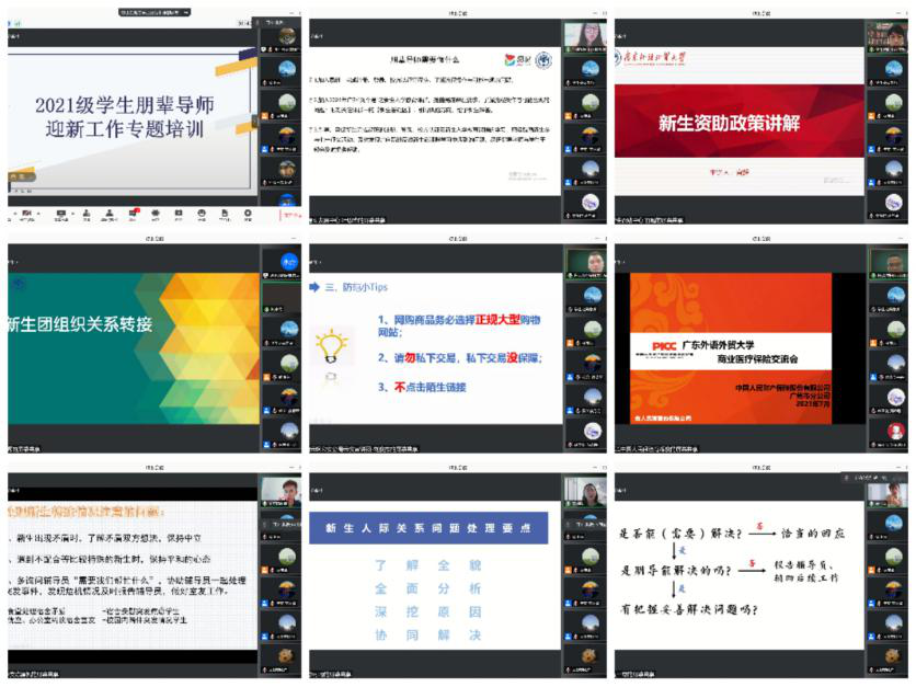 在为期一天的培训中,新一届朋辈导师共接受了包括新生防骗知识介绍,新生入学教育、资助政策介绍、新生团组织关系转接,学生朋辈导师角色定位及常见问题处理等8项专题培训。会议对学生朋辈导师厘清职责定位,有效开展新生接待工作,为新生提供更好的服务和引导具有积极的促进作用。