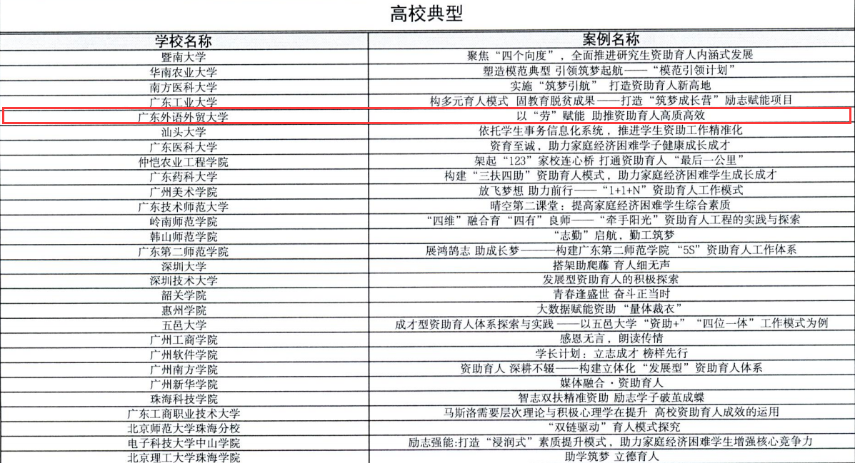 伟德bv国际体育在评选中荣获佳绩,《以“劳”赋能 助推资助育人高质高效》获广东省2022年度高校学生资助典型案例,张悦欢、谢蓉老师获广东省学生资助工作者典型,许嘉航同学获广东省年度励志学生成长成才典型。