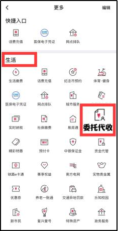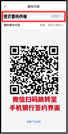 1.登录中国银行手机银行APP,选择“生活”菜单,点击“更多”,点击“委托代收”,点击“签订委托代收-立即签订”(或微信扫码,跳转至手机银行签约界面