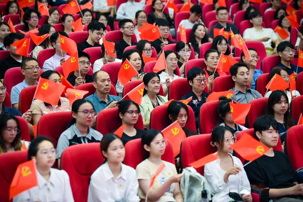 党课尾声,所有参演人员和观众齐唱《没有共产党就没有新中国》,在场师生饱含深情,唱出亿万中华儿女由衷的心声。经典的红色旋律激励着广外人在学思践悟中筑牢信仰,将理论学习成果转化为服务国家战略、融入区域发展的具体行动,在人才培养、科学研究、社会服务、文化传承创新的广阔天地中担当作为。