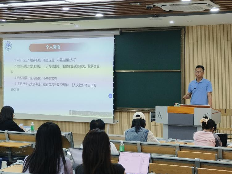 接着,梁倩蓉老师以“教改课题的哲学三问”为主题,通过回答“课题写什么”“选题从哪来”“课题报哪里”三大核心问题,深度“解剖”教改项目申报成功的秘诀。她指出,教改课题要“以通为用”,阐释了清晰自然的逻辑结构对整个申报书的重要性。此外,梁倩蓉老师认为一个好的选题可以来源于课堂教育等实践、申报文件、相关文献等。针对“报哪里”的问题,她鼓励在场所有辅导员“小试牛刀、一书多投、升级打怪、屡败屡战”,强调了实践的重要性。