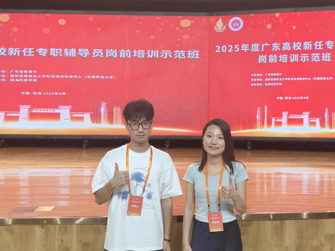 为深入学习贯彻习近平新时代中国特色社会主义思想,落实立德树人根本任务,进一步提升伟德bv国际体育辅导员的业务能力和综合素养。9月8日至13日,伟德bv国际体育两名专职辅导员陈厚青、王斯勤,参加广东省教育厅主办的2025年度高校新任专职辅导员岗前培训示范班。本次培训由广东省教育厅主办,高校思想政治工作队伍培训研修中心(华南师范大学)承办,珠海科技学院协办。