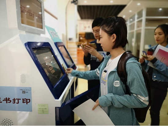 日前,学生奖状自助打印机在南北校学生服务大厅亮相,学生只需操作3个步骤,10秒内即可拿到属于自己的证书。该自助打印设备可打印校级“奖学金”和“优秀学生”等荣誉称号共计 2 大类17种荣誉证书。
