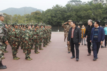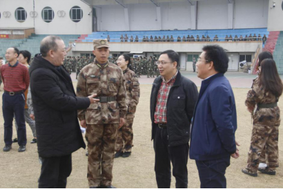 1月18日,在学生处处长谢应东、副处长国佳,保卫处副处长周知等陪同下,校党委常委、副校长刘海春来到北校区训练场视察2018级新生军训工作。