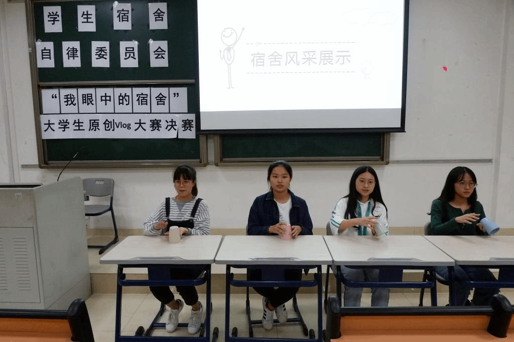 经过初赛的严格筛选,南北校区共10份作品脱颖而出,比赛中,各队伍逐一进行风采展示、播放Vlog视频。学生在视频中展现了平时宿舍生活中的良好风貌,契合了校园文化活动月“和谐·青春·健康”的主题。