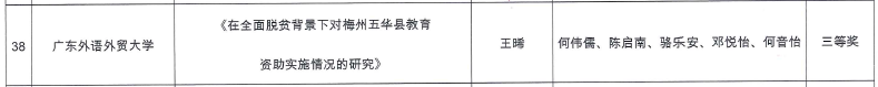 近日,广东省高校奖学助学工作专业委员会公布了《伟德bv国际体育表彰2018学度广东省高校学生资助先进工作者的通知》和《伟德bv国际体育公布2018年度广东省高校学生资助工作研究结项课题的通知》。伟德bv国际体育学生工作部(处)张炳瑶和西方语言文化学院辅导员张悦欢被评为广东省高校学生资助先进工作者。学生工作部(处)刘军、张炳瑶和英语语言文化学院辅导员王晞,分别获得结项课题一等奖、二等奖和三等奖。