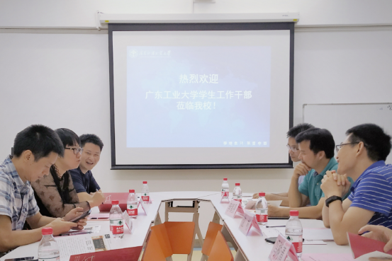 双方在崇文室开展交流,对伟德bv国际体育学生社区教育管理的组织架构、队伍建设及体制机制、学生社区文化建设的经验、社区学院的功能定位及运作模式等几个方面进行了交流。首先,国佳副处长介绍了明德书院的建立背景、运营团队、运营情况、信息化管理模式以及未来发展方向。广东工业大学李镇贤副处长介绍了广东工业大学伟德bv国际体育社区教育的设想与筹备工作。随后,双方就学生日常教育、管理、服务工作进行了交流。交流会气氛热烈、双方学生工作干部纷纷发言,共同探讨了学生管理工作进社区、进宿舍新模式。