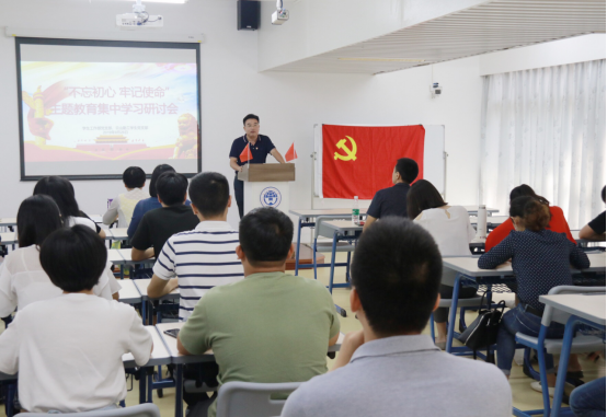 9月26日,学生处党支部、云山勤工党支部在南校区明德书院开展“不忘初心、牢记使命”主题党日活动,召开“不忘初心、牢记使命”主题教育集中学习研讨会。学生工作部(处)部(处)长谢应东在研讨会上讲党课,并对支部推进主题教育作出部署。