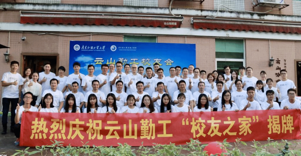 2019年11月3日,在庆祝建校五十四周年之际,云山勤工“校友之家”揭牌仪式在云山咖啡屋隆重举行。原副校长许国彬、学生处长谢应东、英文学院党委书记林绍雄、英教学院党委书记杨敏生、国际学院党总支书记钟罗军、艺术学院党总支书记麦培年、学生处副处长叶开、公开继教学院党委副书记曾健文、经贸学院办公室主任陈哲、云山勤工校友会会长陈智谦,执行会长郭松等勤工校友以及学生处相关老师出席本次活动。