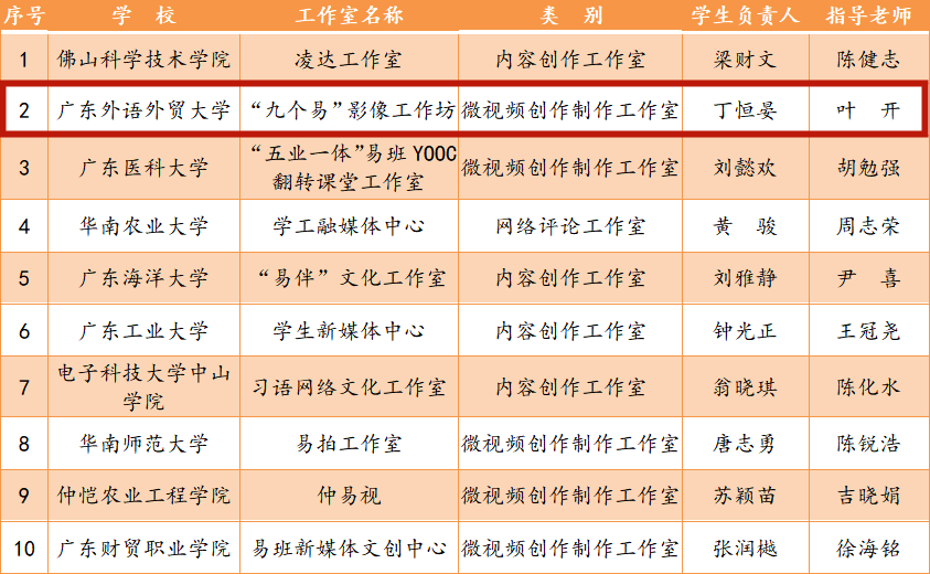近日,广东高校网络思想政治工作中心公布首批广东高校网络文化示范工作室培育建设立项遴选结果,伟德bv国际体育易班发展中心的“九个易”影像工作坊入选重点培育项目。