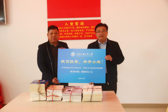 主题教育活动中,学生处党支部坚持以人民为中心不忘共产党人的初心和使命,心系群众,为群众办实事解难事。12月20日,学生处党支部联合勤工党支部深入伟德bv国际体育扶贫对口帮扶点清远市阳山县蒲芦洲村,捐赠了价值9052.3元的图书700余册,以实实在在的行动响应党和国家坚决打赢脱贫攻坚战的号召。