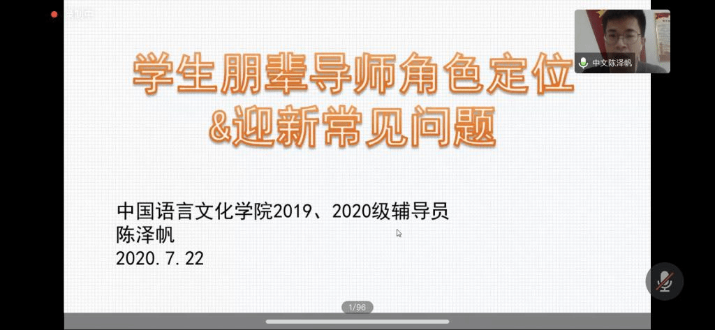 中文学院辅导员陈泽帆讲解角色定位及迎新常见问题