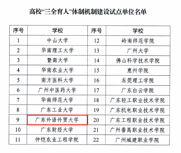 ●12月,经学生处组织申报,学校入选广东省首批“三全育人”体制机制建设试点高校。