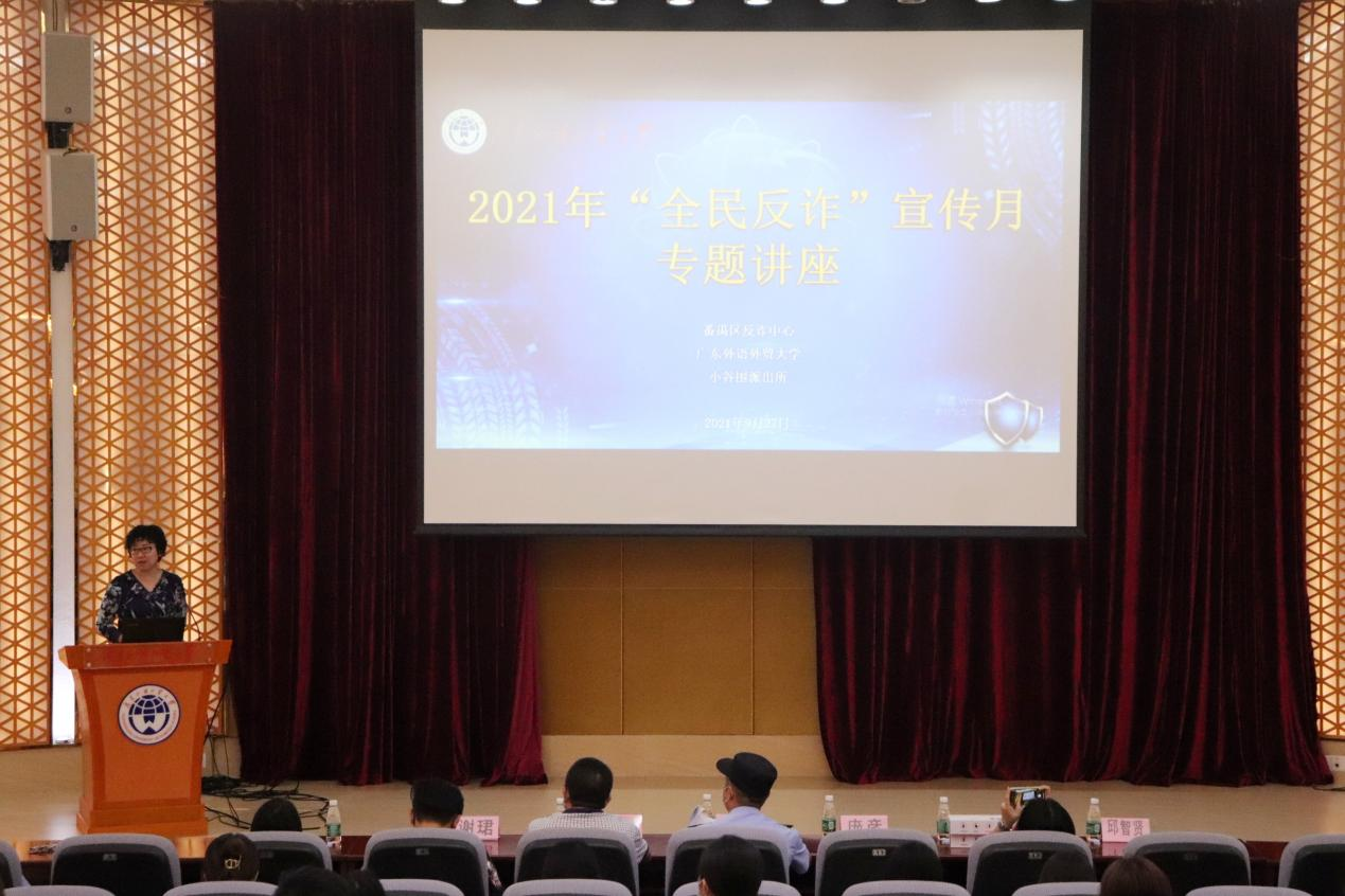 为提高学生防范诈骗意识,提高学生辨识能力,切实保障学生财产安全,9月27日、28日下午,2021年“全民反诈”宣传月专题讲座分别在南校区八角楼、北校区一教109阶梯教室举行。番禺反诈中心警官庞彦、白云分局宣讲团成员林燕珊警官担任主讲。番禺反诈中心警官李璇、黄石派出所驻校警官王帅,保卫处副处长钟雄波、林安杰,小谷围派出所驻校民警邱智贤以及学生代表参与讲座。会议由学生处副处长国佳主持。