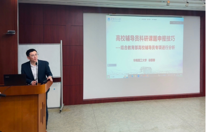 随后,赵德强部长深入浅出,围绕申报书研究背景、研究内容、拟突破重点和难点、研究思路等模块,详细讲解了项目申报的撰写规范。他提出,申报书的撰写是科研项目规划的关键环节,应参照研究问题,匹配相应的研究方法,从而搭建较为完善的理论框架。