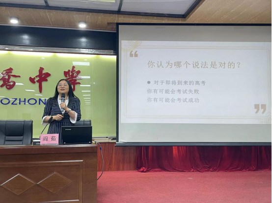 签约授牌仪式后,伟德bv国际体育心理中心阎茹副主任为华侨中学高三年级200余名学子带来了以“身心赋能,助力高考”为题的心理指导讲座。