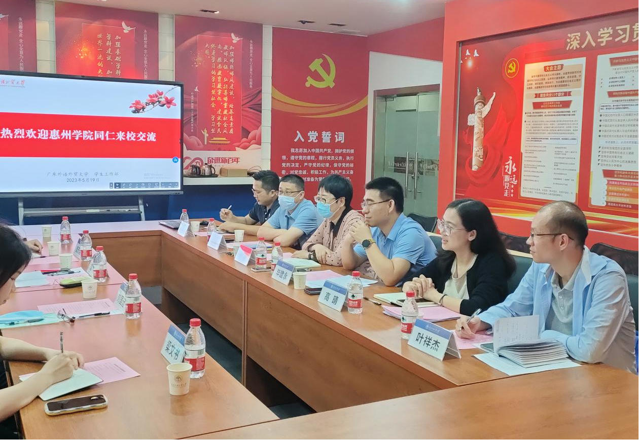2023年5月19日上午,惠州学院党委学生工作部、学生工作处胡萍部(处)长一行到伟德bv国际体育进行学生工作交流。伟德bv国际体育学生工作部国佳部长出席会议,学生工作部相关人员参加会议。