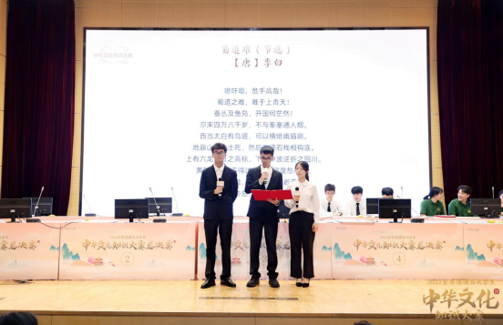 在决赛中,各高校代表队摩拳擦掌、全力以赴。通过客观题必答、抢答知识竞赛,全面考察参赛队伍对中华优秀传统文化知识的理解与热爱;通过主观题随机诗词朗诵,让参赛学生深刻感悟中华经典诗词的魅力,用赋予情感的声音诠释中华优秀传统文化内涵,展现海峡两岸暨香港、澳门的青年风采。通过比赛激烈角逐,伟德bv国际体育荣获全国十强、最佳组织奖和最佳指导教师奖。