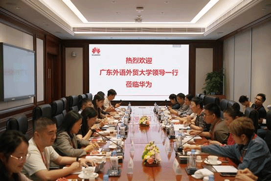 随后,双方开展了以“创新科技 智领未来”为主题的研讨会。华为企业培训与认证部院校南区总监袁宜彬以“面向数字未来,共建ICT人才生态”为主题做分享。他从华为公司近况、数字技术人才需求、华为人才生态体系、华为产教融合实践等方面进行详细介绍。国佳对华为公司组织本次交流活动表达诚挚的感谢,并表示广东外语外贸大学近年来加强复合型、跨学科、创新型人才培养,与华为在全球信息与通信技术领域的领先地位和创新精神高度契合,希望通过此次参访,进一步深化校企合作,推动人工智能与人才培养的深度融合。