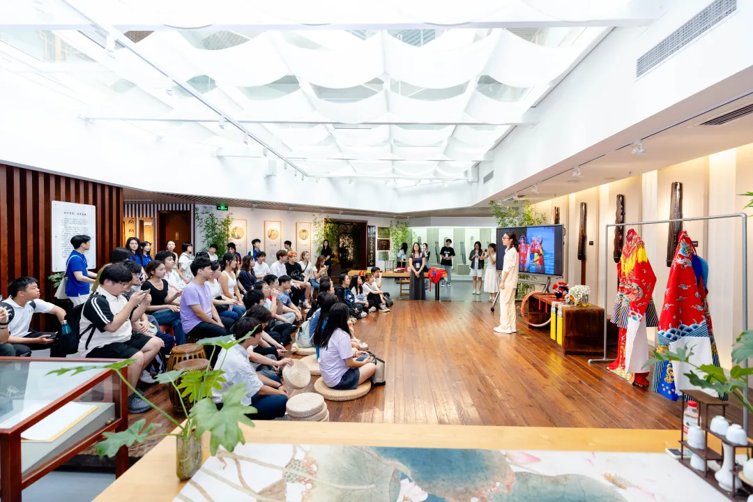 活动的第一站是参观星海音乐学院岭南音乐博物馆。博物馆的讲解员为师生们上了一堂生动精彩的岭南传统音乐文化课,在讲解岭南歌乐时即兴演唱各地区民歌,并邀请同学上台现场学习粤剧《帝女花》,台下师生都听得聚精会神。