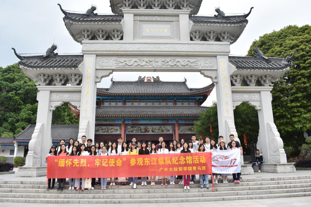 2018年4月21日,根据“灯塔工程”要求,经贸学院全体青马班第一期学员、经贸党建等42名同学本着弘扬社会主义核心价值观的初心,在经贸学院团委书记唐静老师的带领下,前往惠州参观“东江纵队纪念馆”教育基地。经贸学院青马工程培训班将会继续坚持贯彻思想引领、实践育人的理念,传承“东纵精神”,不断提高自身思想素质和工作水平,并在未来的社会主义现代化建设中做出贡献。