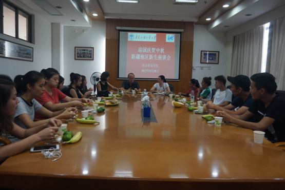 为了解新疆民族生的大学生活适应情况以及解决他们目前在生活中存在的疑惑,经济贸易学院于2017年9月28日下午在南校区院系楼301召开了新疆地区2017级新生座谈会。出席本次座谈会的有院长张建武、辅导员唐静、实习辅导员郭伟杰以及12位新疆新生。