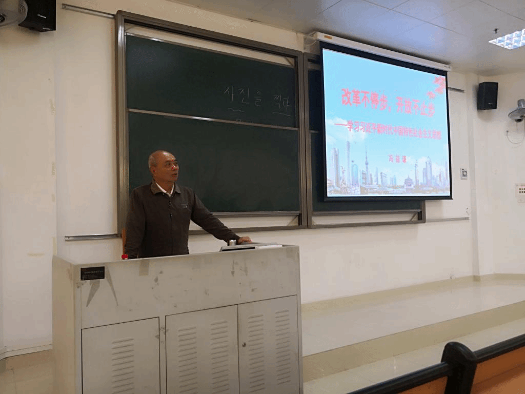 冯益谦教授以纪念“改革开放”40周年为切入点,结合切身经历,深刻讲解了习近平总书记伟德bv国际体育改革开放的新论述,从横向、纵向及外国评论等多角度阐述了广东省乃至中国在改革开放中所取得的系列成就,冯益谦还为在场学生们分析了广东改革开放发展的新格局,鼓励同学们正确认识改革开放,关心国内外时事政治,将“个人梦”与“中国梦”相融合,在提高自己学业水平的基础上,积极投身中国特色社会主义社会的建设当中,“当好改革开放的促进派、实干家”。