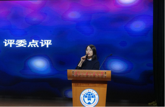 比赛结束后,许艺老师代表评委进行点评。她首先肯定了同学们充满自信与活力的表现。随后,她谈到选手们语音中存在的一些问题,告诉同学们应当打牢音标基础,清晰区分英式英语和美式英语的发音,并通过不断纠正单词的发音练成地道的语音语调。此外,许艺老师还举了一些具体的例子用以说明在日常口语练习中需要注意的事项,并向同学们推荐了相关的网络课程。