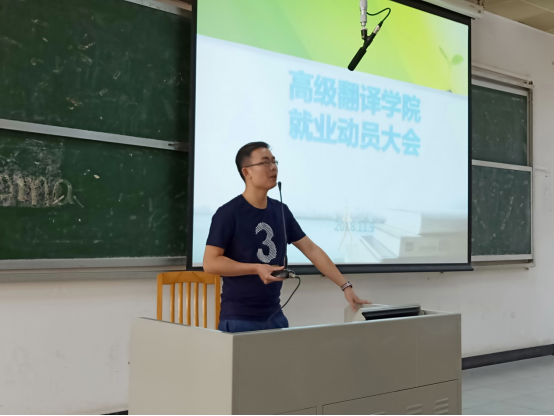 为调动毕业班学生的求职积极性,帮助同学们树立正确的就业观和择业观,引导学生合理择业,翻译学院于11月9日下午在二教219举办了2019届全体毕业生就业动员大会。出席本次大会的嘉宾有学院党委副书记杜焕君,辅导员颜梁柱和刘亮。