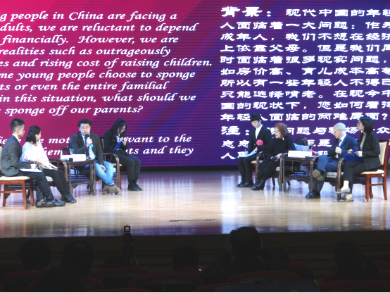 第二轮为对话口译,中外嘉宾分别就“如何看待中国年轻人啃老现象”和“人工智能是否会成为人类噩梦”两个议题展开辩论,由八位晋级选手进行现场翻译。围绕第一个话题,中文嘉宾从多个维度阐述了时代背景下中国年轻人啃老的实质并提出了针对性的见解,而英文嘉宾从外国人的视角解读中国式啃老现象,提出了新的思考。在第二辩论中,中文嘉宾结合当下的社会热点“基因编辑婴儿”事件阐释人工智能的利弊及影响,英文嘉宾则认为要辩证地看待人工智能的出现和发展,并引用不同的案例对自己的观点作进一步阐述。
