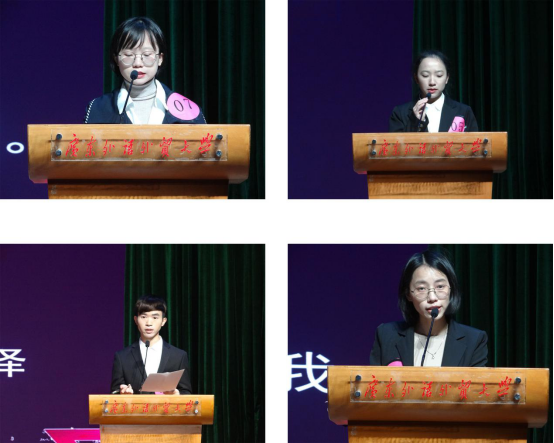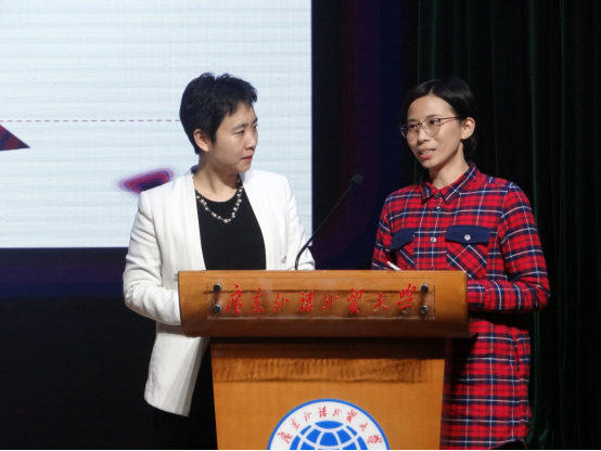 最后,评委王巍巍和吴晨祎对本次大赛选手表现进行总结与点评。吴晨祎表示,从着装和台风可以看出选手非常重视此次比赛,但在翻译能力方面,个别选手未能正确处理自己无法理解的信息,说明作为译员的专业性还有待加强。她认为,口译工作中最重要的三点是理清语言逻辑、充足的译前准备和实力支撑起来的自信。王巍巍补充道,选手们要把比赛当成真正的口译任务,不求面面俱到,但一定要传达有效的信息,达到沟通的目的。最后,王巍巍纠正互动环节中“佛系”与“塑料姐妹花”二词的翻译错误,提醒同学们做翻译时不能单纯从词典或是网络中去寻求答案,而应该先弄清词语深层次的含义再结合语境进行翻译。此次大赛14号选手方淑君凭借出色的发挥和精彩的表现摘下桂冠。13号选手罗逸和2号选手陆绮琪获得二等奖。