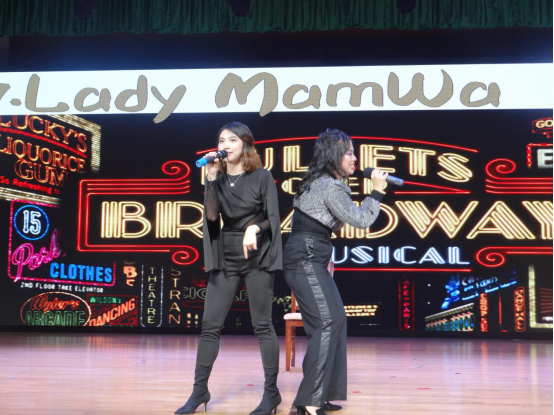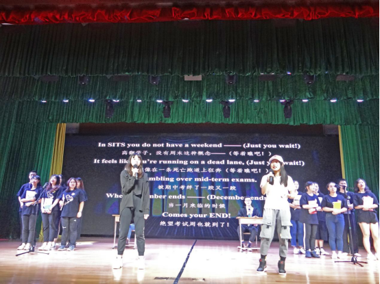舞毕歌起,本科1802班的林蓓苗扮成网红“熊本熊”,为同学们带来粤语歌曲《双人床的空位》,表达了年轻人对美好爱情的渴望。随后,宗岱班的同学创造性地将《泰坦尼克号》、《幻乐之城》、《小王子》、《寻梦环游记》和《冰雪奇缘》五部电影的经典情节汇编在一起,献上笑与泪的交融的舞台剧《歌舞青春》。