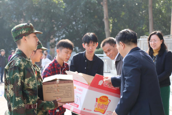 学院领导一行还给每位教官与新生带去了学院精心准备的慰问品。同学们纷纷表示,非常感谢学院领导的关怀,在接下来的训练中一定不辜负学院领导的殷切希望,以更加饱满的热情投入到训练中,争取在军训汇报演出中取得优异成绩。