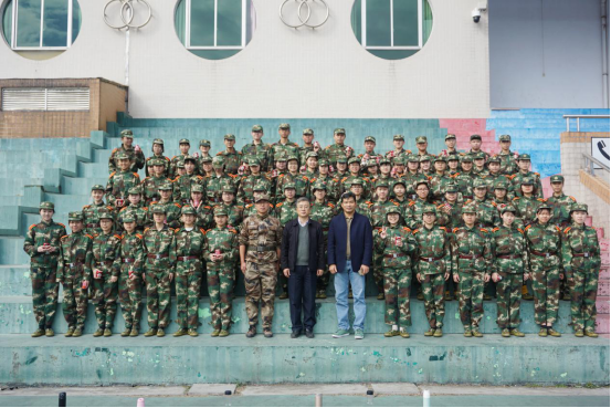 1月17号上午,翻译学院党委书记李和民、副书记张林茂、辅导员颜梁柱、刘亮共同前往训练场看望慰问18级军训的学生。全体学生在教官的指挥下有秩序地席地而坐,迎接学院领导的慰问。