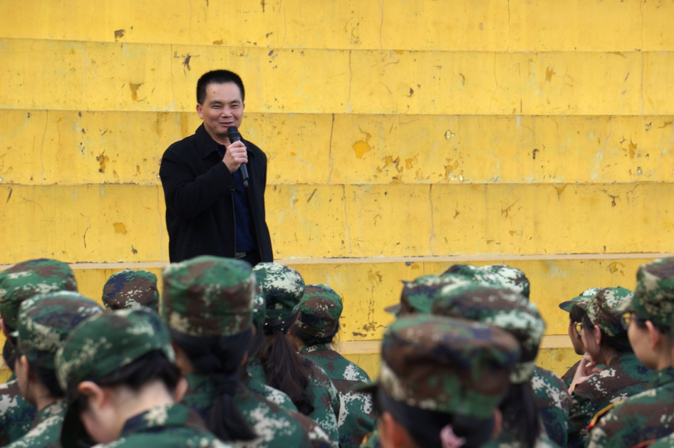学院领导老师一行来到田径训练场,对学院参训学生及所在连队全体教官进行了亲切的慰问,全体参训学生整齐列队,迎接院领导的检阅。林绍雄在讲话中指出,大学军训比以往中学军训任务更重、意义也更加深远,不仅体能素质得到锤炼,还要增强国防知识的学习。他希望,同学们能主动学习培养自身坚韧不拔、艰苦奋斗的品质,养成遵守纪律、坚持锻炼的好习惯,全力以赴,圆满完成军训任务。