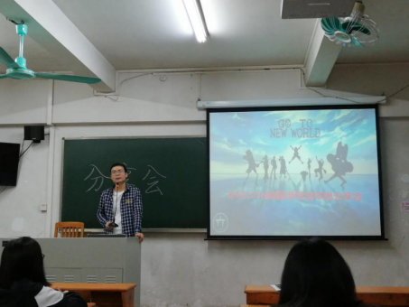 在分享会开始之前,学院辅导员颜梁柱做动员讲话。他介绍了学院往届本科生的毕业去向,简单分析了当前的就业形势,并希望同学们根据自身特点,认清形势,尽早明确方向和付之行动。