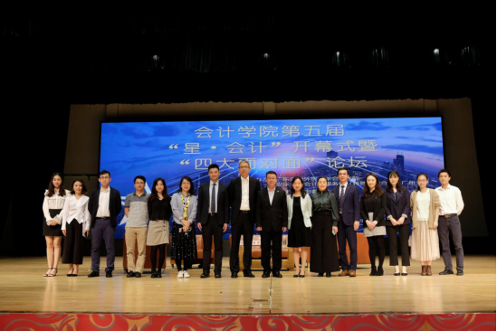 2019年3月21日下午,伟德bv国际体育会计学院和安永华明会计师事务所(特殊普通合伙)广州分所共同主办第五届“星•会计”学术文化节开幕式暨“四大面对面”论坛在南校区大会堂举行。会计学院党委书记谢伟光、党委副书记杜焕君、校团委龙飘飘、各兄弟学院团委书记和辅导员,安永华明会计师事务所审计合伙人黄寅先生、毕马威华振会计师事务所税务合伙人何莹女士、普华永道中天会计师事务所审计高级经理杜维伟先生、德勤华永会计师事务所税务高级经理林健涛先生,山东财经大学会计学院党委副书记付亚、教研室主任张彦国、团委书记于苗等嘉宾出席开幕式。