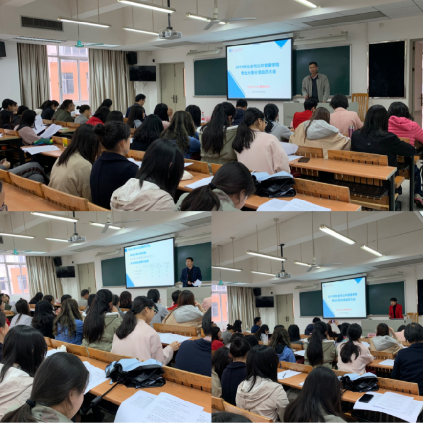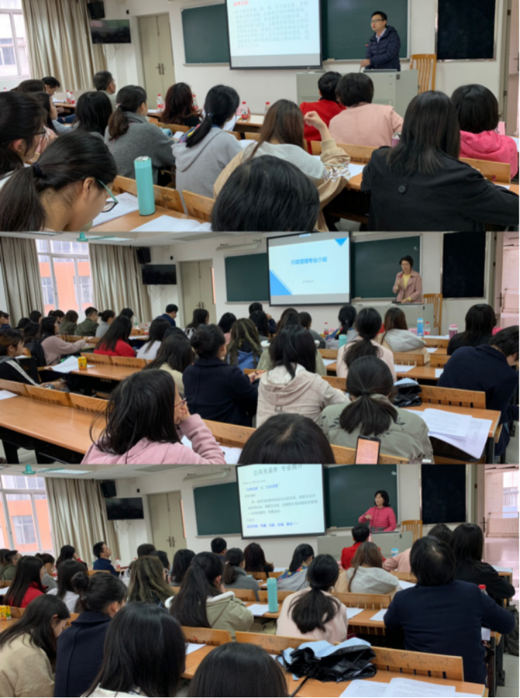 公管学院公共管理大类包括公共事业管理、行政管理、公共关系学三个专业。会上,张信勇副院长首先介绍了学校和学院专业分流工作的实施细则及安排,然后各系主任分别就本专业的专业特色、发展方向、专业建设、课程设置、实习实践、就业情况、校友发展等情况进行了详细介绍,让学生对分流的专业有更清晰的认识与了解,从而选择适合自己的专业。
