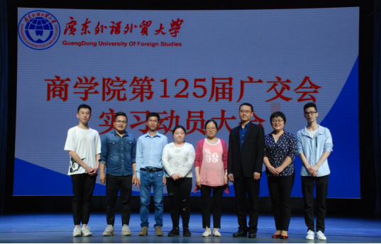 2019年4月3日12:50,伟德bv国际体育第125届广交会实习动员大会于南校区B8学术报告厅隆重举行。出席本次动员大会的领导与嘉宾有:中国对外贸易中心人事处培训发展事务科副科长司徒毅、伟德bv国际体育党委副书记沈长霞、伟德bv国际体育六级组织员尚丹、伟德bv国际体育2013级人力资源校友、现广交会人力资源部陈嘉豪、广东南油外服有限公司万骞、伟德bv国际体育辅导员谢杭锋、殷毅山。会议由尚丹主持。