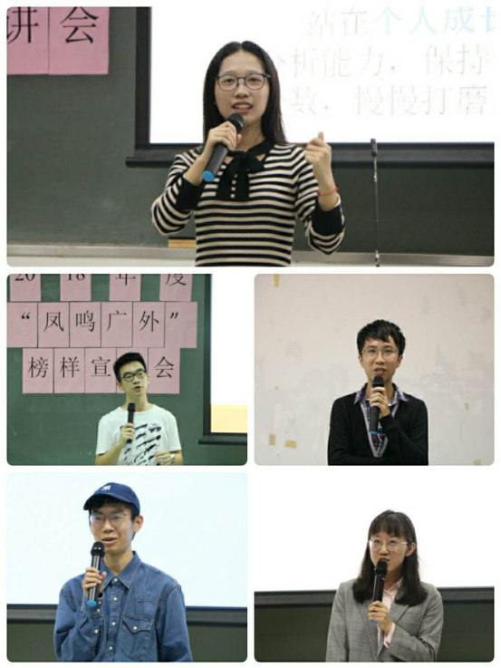 2019年3月28日,会计学院“凤鸣广外”优秀学子榜样分享会在南校区教学楼G207顺利举行。会计学院党委副书记杜焕君、辅导员刘志鹏、李浩然,优秀学子代表卢浩伦、何锦秀、潘道勤、骆俊霖、李娜妮和学院学生代表参加本次分享会。