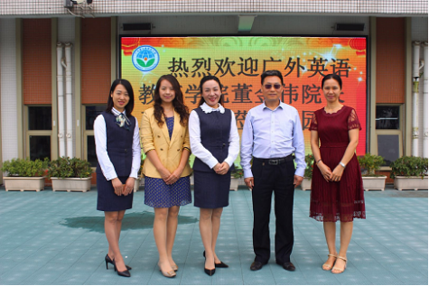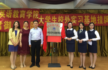 2019年5月10日,英语教育学院董金伟院长、骆银花副书记以及基础教育研究中心主任江健一行赴广外佛山君御幼儿园,与师生一起举行了别开生面的实习基地签约及挂牌仪式,并举行了该园国际班课程研讨会。