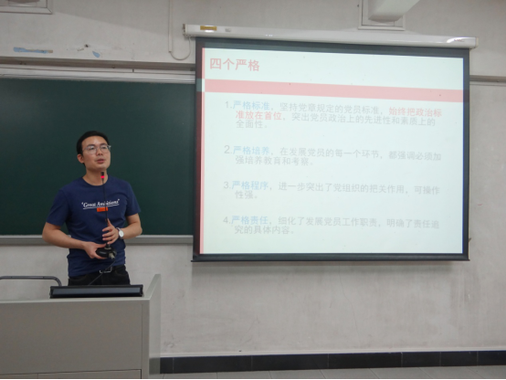 近日,翻译学院第四十八期入党积极分子在二教130听取了《发展党员基本程序和要求》主题党课,翻译学院党建组织员颜梁柱给入党积极分子讲解了发展党员的基本程序和要求。