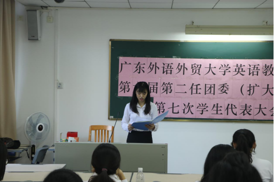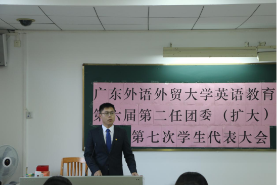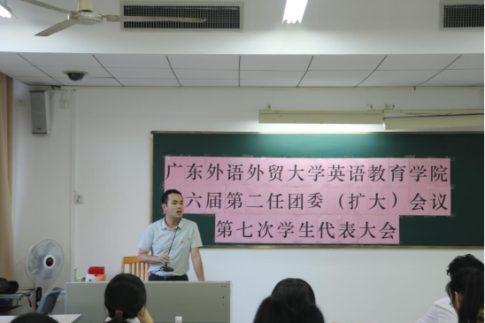 2019年6月14日晚6点,广东外语外贸大学英语教育学院第六届第二任(扩大)会议、第七次学生代表大会在南校区教学楼D212举行。英语教育学院团委书记林泽龙老师,校学生会副主席汤志彬出席本次大会。英语教育学院第六届第二任团委、学生会委员,各位候选委员以及学生代表参与本次大会。