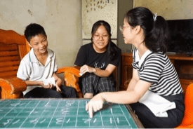 除了在课室里上课外,“源心圆愿服务队”的队员们更延续了上一届的良好传统,坚持“送教上门”,为一位特殊的孩子进行了家教启蒙。两位老师分别为小朋友准备了语文课和数学课,在老师们耐心地教学和积极地引导下,小朋友渐渐开朗,能回答对不少问题。