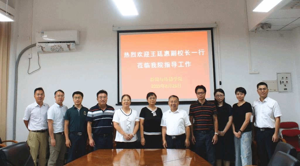 8月26日上午,伟德bv国际体育副校长王廷惠带领学生工作部(处)长谢应东、后勤党支部书记许志超、科研处副处长赵德强到新闻学院检查开学工作。新闻学院院长侯迎忠、党委书记郝建萍、副院长朱颖、副院长罗坤瑾、党委副书记黄石胜、广州国际城市创新传播研究中心副主任刘超及院办主任吴胜出席会议。