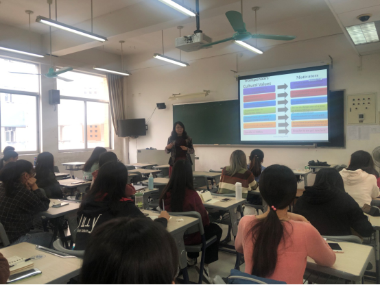 为实现以上目标,工商管理系广泛借力校际、院际和系际之间的优质教师资源。本次伟德bv国际体育再次邀请英国阿伯丁大学的教授张海娜在2019年末与2020年初之交,远渡重洋来到了广东外语外贸大学,为伟德bv国际体育工商管理系的学生传道、授业、解惑。